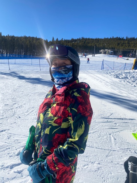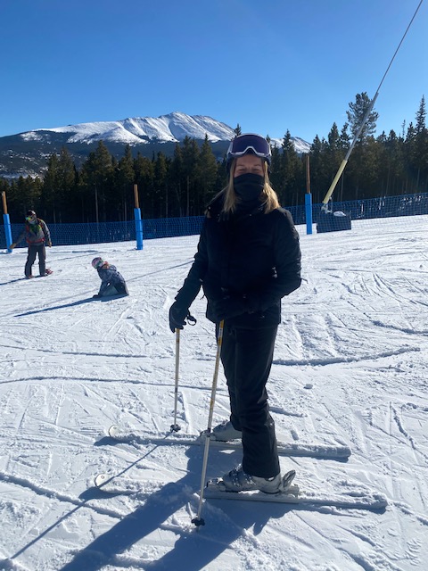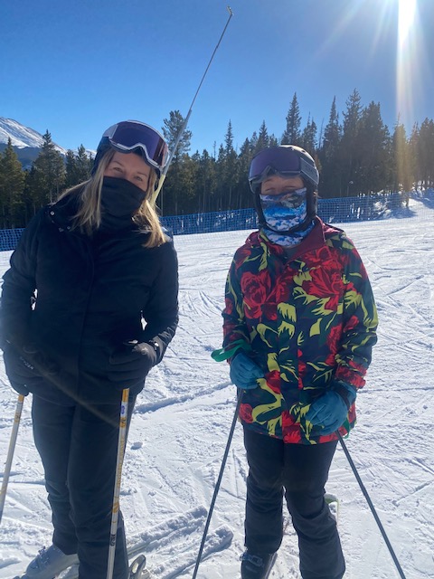 Olivia (somewhere close to Houston), April (Austin). Getting rid of the wedge (is this ever a recurring theme), how to match that inside ski that hangs up, how not to let the inside ski even get hung up (no wedge), tipping the inside foot to flatten ski an get it on the outside edge to match other ski, balance, shin pressure, flex ankles and knees, pelvis over boots, initiate turn with an opening of the knee to bring weight forward, tipping and steering both feet/skis together, skidding, skidding and more skidding, speed control from friction/turns/completing the turn (NOT from the wedge), hands and arms up and forward (no being lazy with this one), what is leg rotation (steering) and how to do it together with both legs.