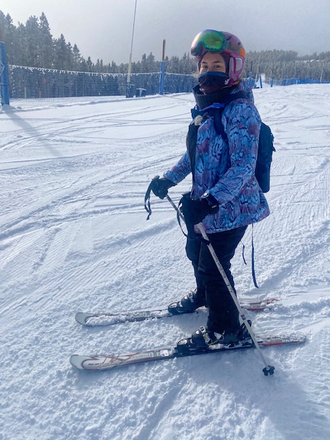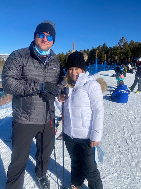 Matt & Jenny – Austin. First time skiing, start on the carpet, glide around on one then two skis, first wedges kind of shaking, better each time up/down the carpet, wedge change ups, power wedges, now some mild direction change, time for the Poma, first chair ride on Rips, no falling when unloading (impressive), power wedge down the Poma line, pressure on shins, stay balanced (can’t get too far forward), arms and hands in athletic position, direction change with mild weight shift while steering both skis, speed control now from turn shape (and still some of the wedge), skied down Trygve’s Run at day’s end, no falls, nice speed control.