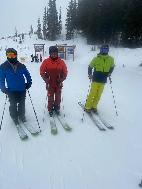 Richard (Golden), Michael (Breck), Ben Lee (NYC), Michael (NYC). Blacks, double blacks and bumps of all varieties. Balance in the bumps, flex/extend to keep the head constant level, turn on top of bump, maintain edge grip, flex inside leg and rotate hip to give edge angle and assist leg steering, one ski drill working with new inside ski, strong position, don’t be lazy with upper body, plant/touch pole to initialize and stabilize, how leg steering works, don’t be so tall, CM cross over, come to new edges then begin to steer/shape, both skis on snow, rounder turns, wind up the spring, vertical and sagittal alignment. Snowed 4 inches from noon to 3:30pm, Outlaw, Rustler, Stampede, Peerless, Meadows, High A.