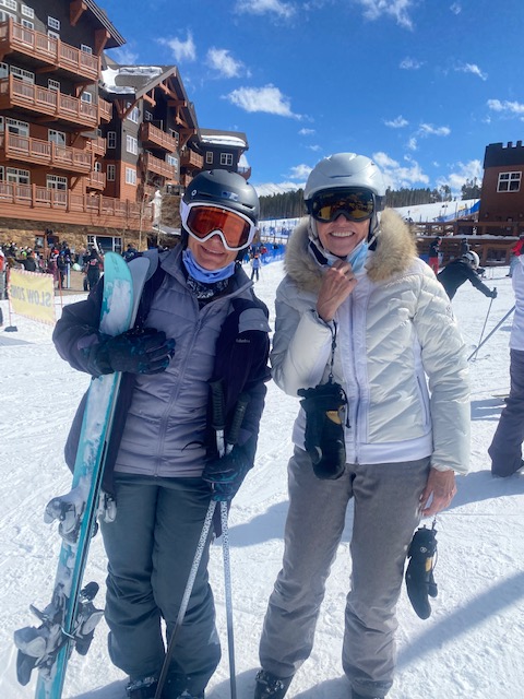 Eileen (Silverthorne, AM), Alice (Ohio, AM), Keith (Maryland, PM), Alex (NYC, PM). Morning working on basic technique on blue terrain, afternoon focus on moguls on black terrain – same turns, just different levels of movement development and understanding. How the turn starts with tipping from the ankles/knees, old outside leg begins to collapse, old inside leg begins to lengthen, CM crosses over the feet, now we’re on the new edges and lots of doors open (skid, shape, steer, slide, increase edge angles to arc, pivot turns, etc). Begin direction change with new inside ski (AFTER edge change), position of strength, get lower (standing tall is not your friend), flex ankles and knees with some bend at waist, hips rotate into the invisible uphill chair, arms forward/wide/out from the body, pole touch comes from the wrist and initiates the transition by signaling the hips forward and lateral – THUS, the edge change, hands on knees drill, pole balance drill, inside ski drill, lots of bumps, head at constant level in moguls, legs are the shock absorbers, top of bump good place to initiate turn, DON’T LOSE SKI PURCHACE DURING THE TRANSITION, keep both skis on the snow, no need to turn on every bump, make some nice round sinuous turns, balance is the big issue in uneven (aka, moguls) terrain.