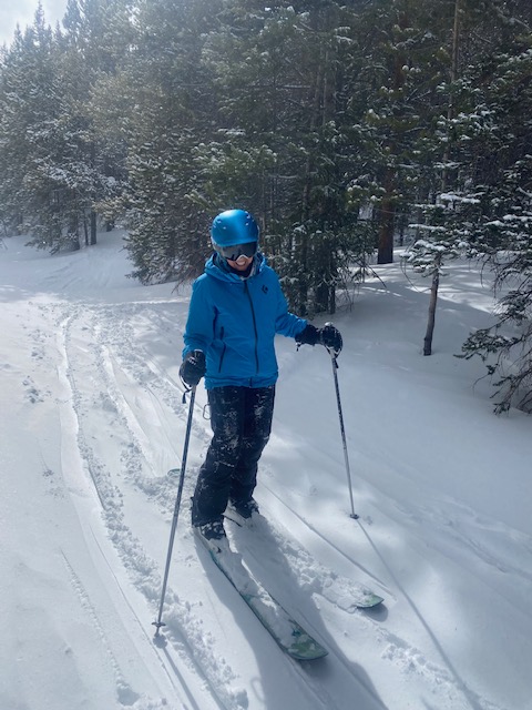 John (New Jersey, morning), Brenda (Odessa, afternoon). Crazy day, winter for sure, some sun, some periods of blizzard (I liked the blizzard, storm skiing), three inches of new by day’s end, cold feet (yeah some, but worth it). John in the morning working on inside ski release and steering, butt in the chair, more flex in ankles and knees, completing the turn with strong leg steering, tip before steer, getting off the hard edge, two ski pressure (all the way from initiation through finish), hockey slides/stops. Brenda in afternoon, no teaching, not one word, all skiing the new powder, trees, T-bar, White Crown, No Name, B-50 line, Meadow, Toilet Bowl, some fresh tracks every run – the essence of skiing, what it’s all about, takes years to get to the 9 level, what a journey, never ends.