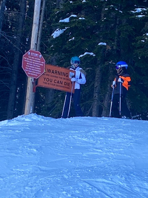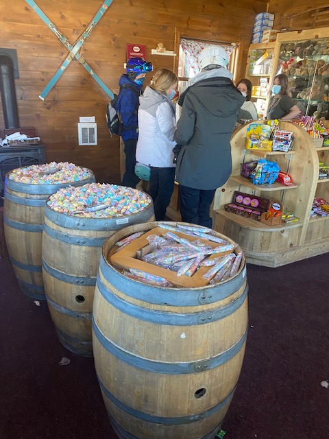 Tessa and Toto – Arrowhead. 30K vertical, lots of bumps, black and double black … less bracy on downhill leg, more fall line bumps, keeping the uphill arm from pulling back, exploring the edge … another stop at Candy Cabin – Toto, how can you eat so much of that stuff?