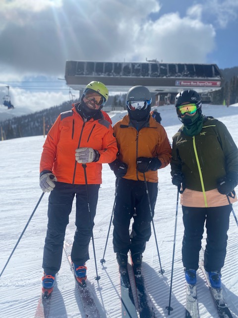 Paige & Tom (Colorado Springs). And there goes February, days are longer, March should mean spring time, but dang it was cold today. Breakthrough day: hockey slides and ‘sitting in the uphill chair’ seemed to be the keys, still working on pole touch (plant, whatever), rhythm, linking turns, narrow ski corridor, more flex in legs, get lower and stronger, three black runs (piece of cake), balance in the moguls (not a piece of cake, but we are still speaking).